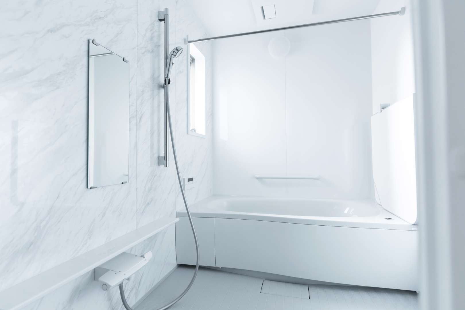 浴槽やシャワーの交換と壁や床のタイル張り、照明の設置、換気扇の交換を行いました。